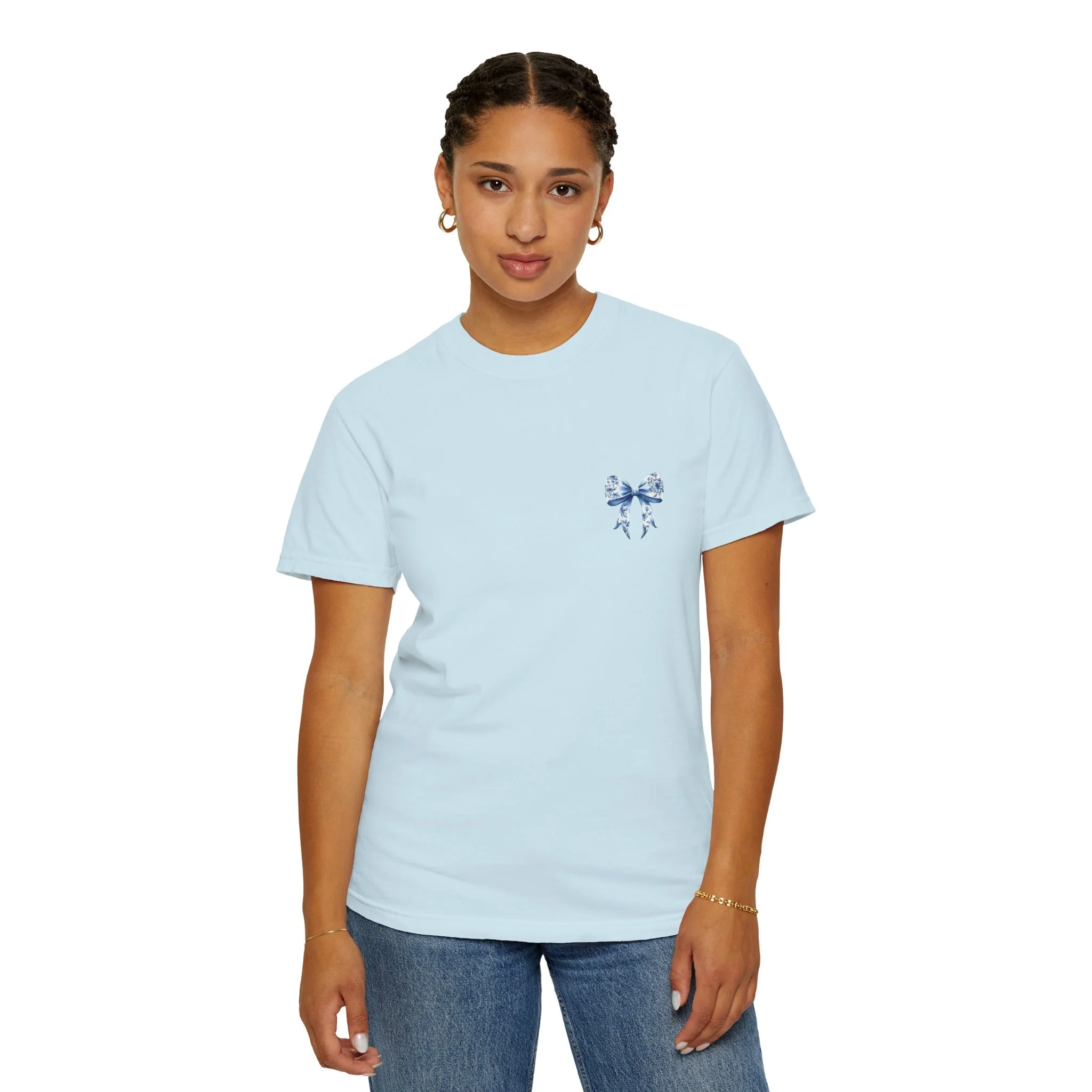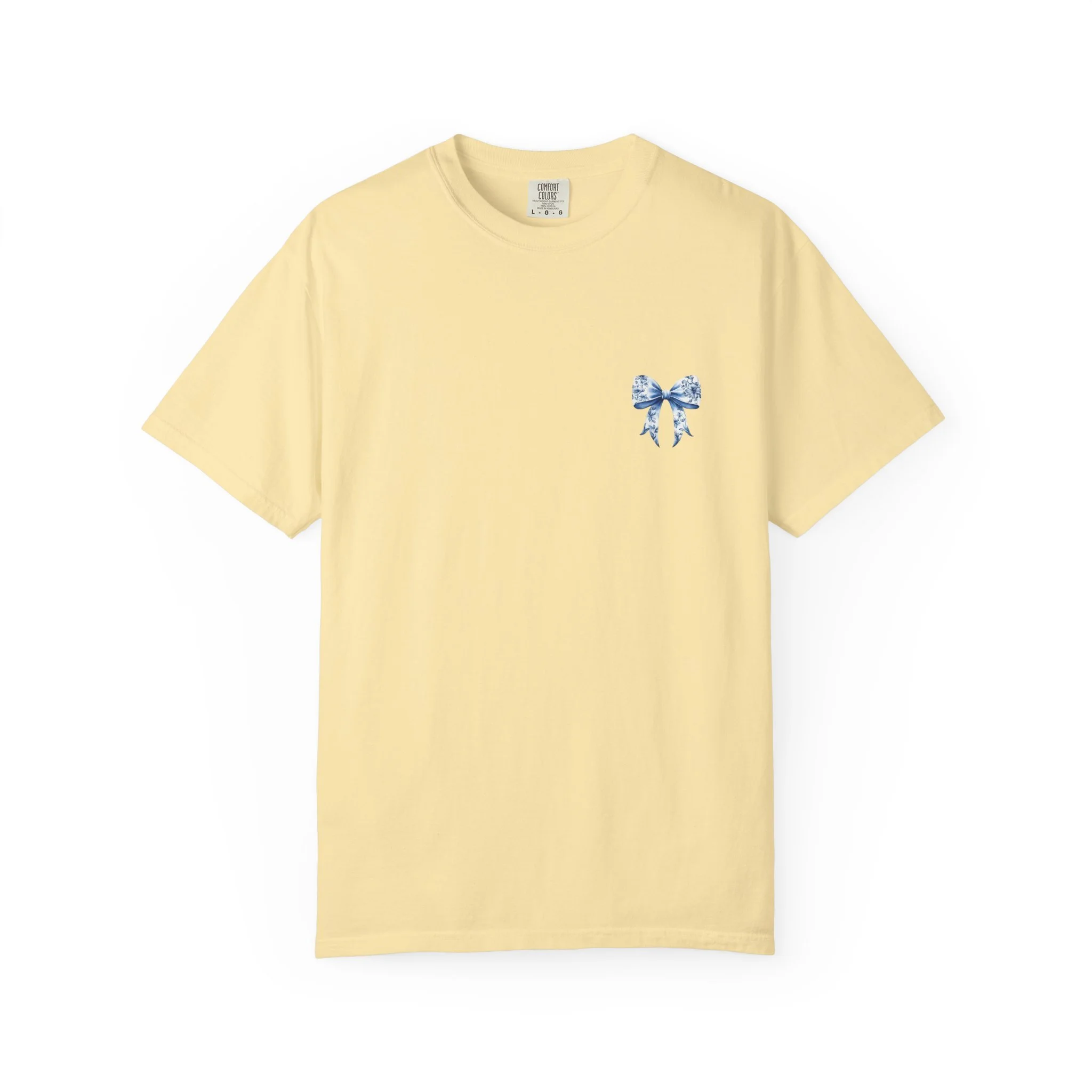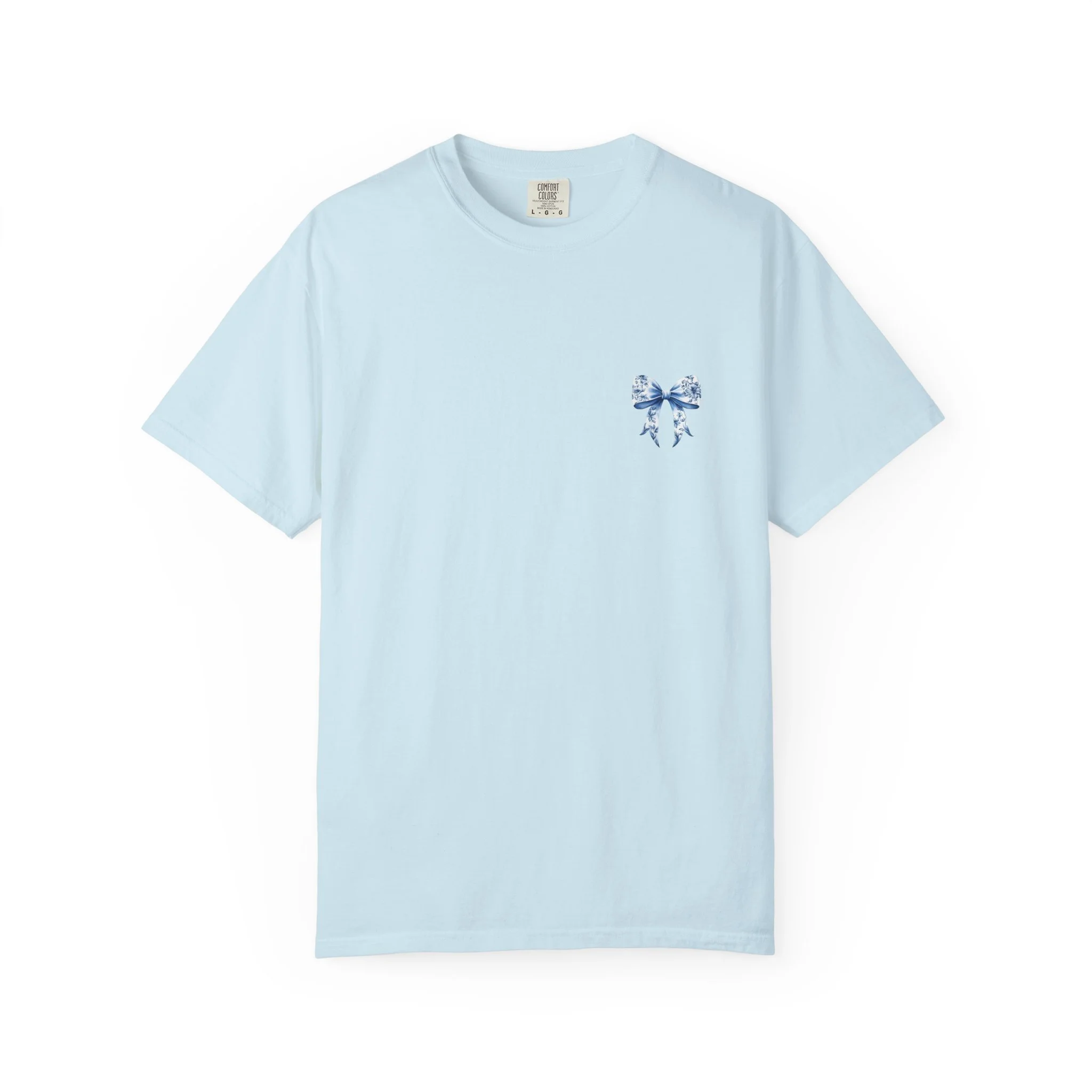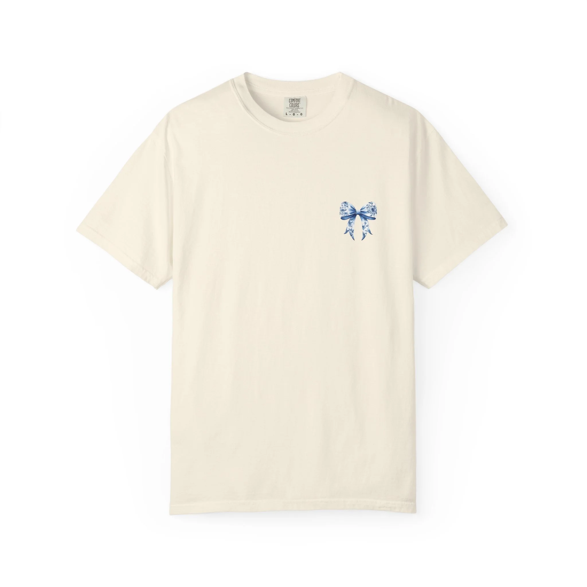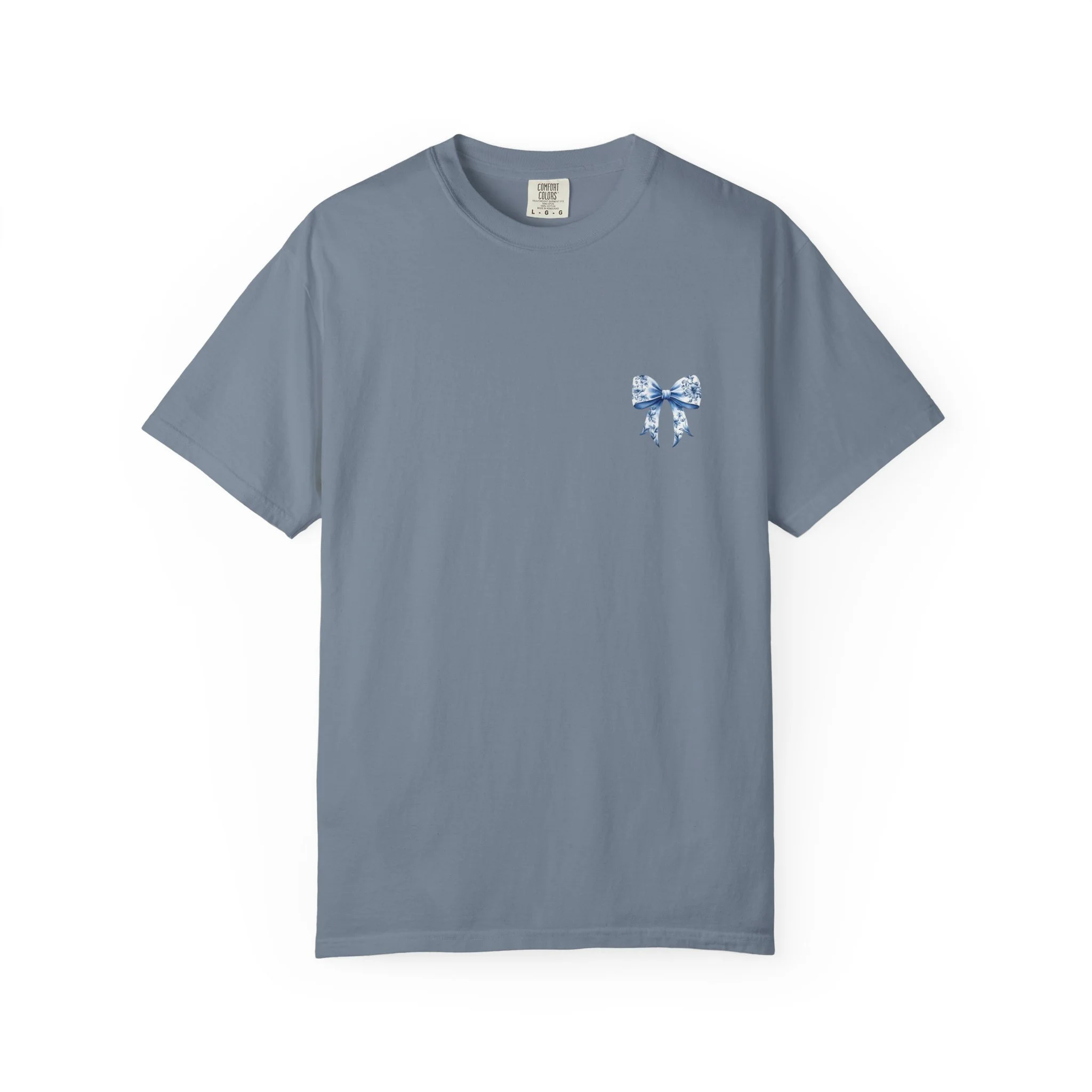 This relaxed-fit tee feels like a worn-in favorite from day one. Heavyweight, garment-dyed cotton gives the fabric a soft, lived-in hand and subtle vintage color. A delicate blue floral bow sits small over the heart and opens into a larger, painterly bow across the back—an artful, slightly nostalgic motif that reads like a keepsake on fabric. Wear it for slow mornings with coffee, long roadside drives, or evenings at a backyard bonfire. The roomy cut layers easily over a long-sleeve for cooler months and breathes well on warm days. With durable double-needle seams and a sewn-in label, it holds up to everyday wear while keeping that soft, muted color that follows you around like a comfortable memory.